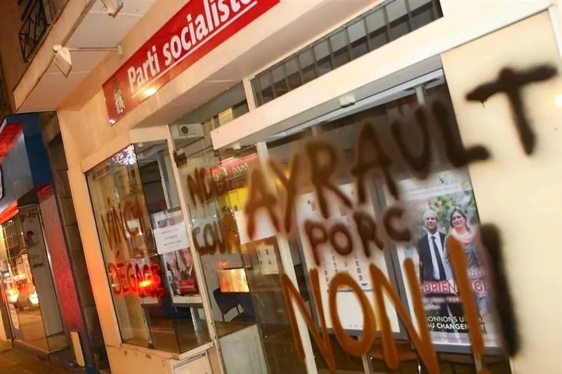« Ce sont des actes totalement déplorables, juge Jean-Marc Vacher, secrétaire de la section locale du PS. On ne peut pas à la fois réclamer davantage de débat [à propos du projet d’aéroport] et se livrer à ce type de dégradations. » Hier soir, la seule plainte pour dégradations enregistrée au commissariat émanait d’un représentant de Gilles Bourdouleix. Mais le PS doit en déposer une « dans les tout prochains jours ».